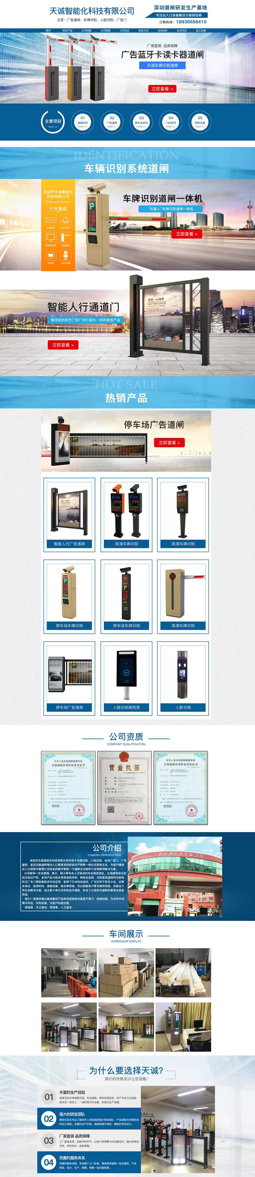項目介紹:天成智能化有限公司專致于車牌識別、人臉識別、自動廣告門、廣告道閘、直流無刷道閘等出入口管理系統(tǒng)研發(fā)生產(chǎn)銷售一體化式國家高新企業(yè)